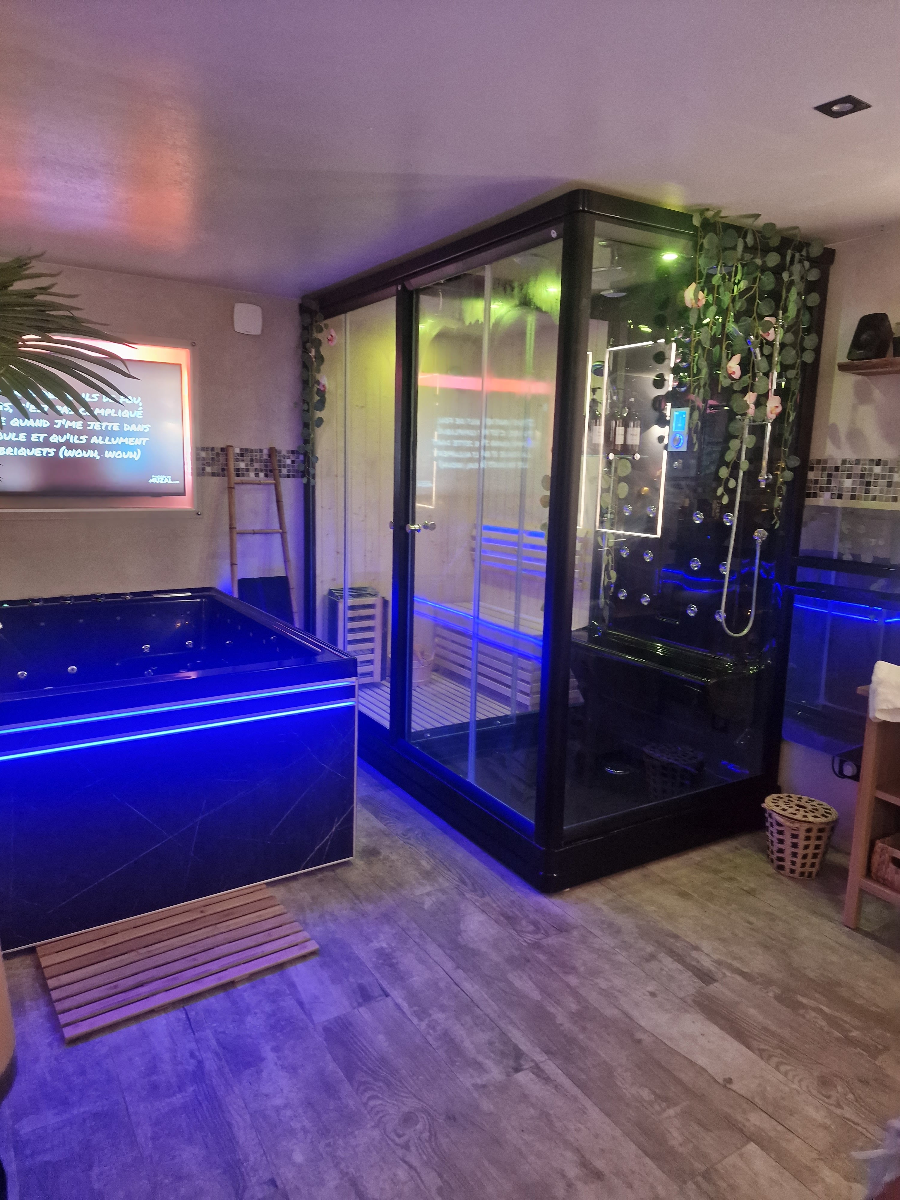 Super moment détente en couple !. Le spa est très joliment décoré . Le jacuzzi est top et hyper grand, et le sauna est très agréable . Le massage en duo était génial !. Encore merci à Amir & Sabia qui sont des hôtes adorables . Allez y les yeux fermés !.