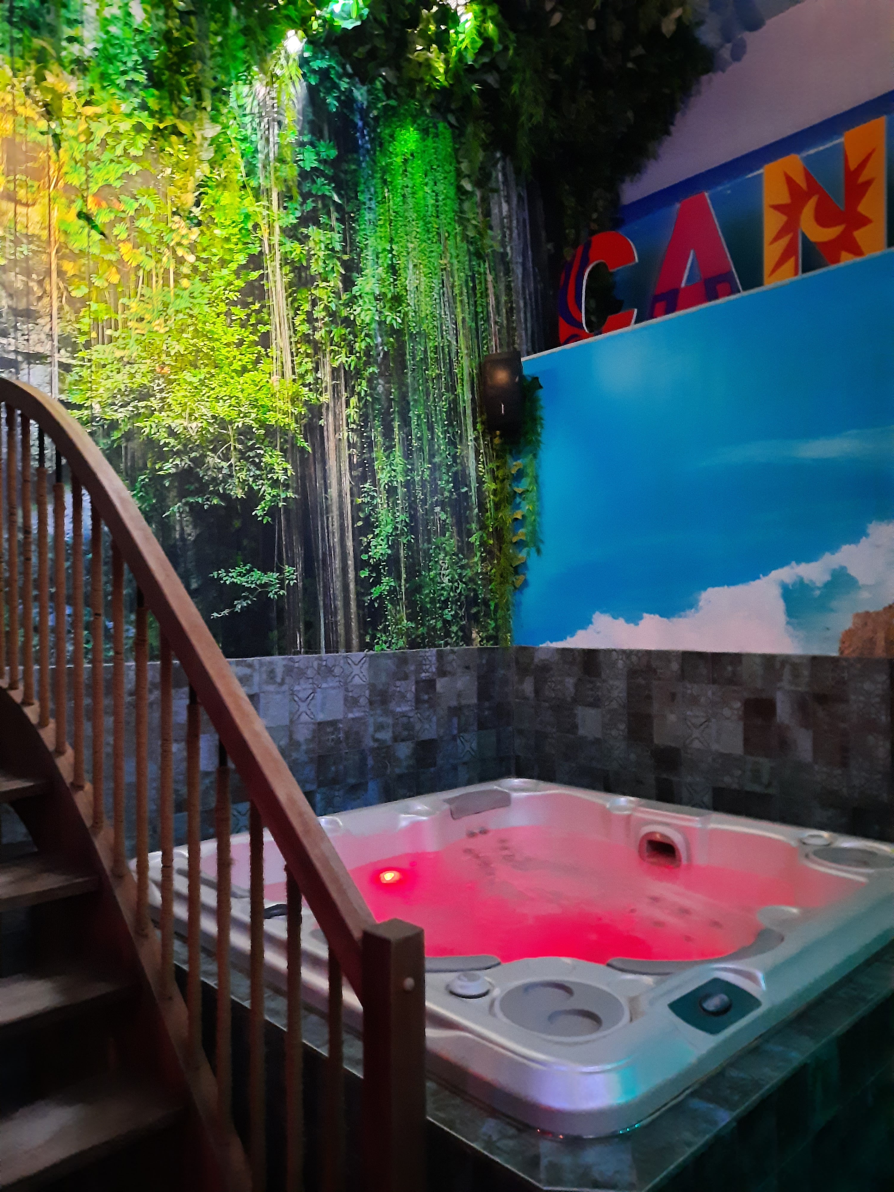 L’eau du jacuzzi était froide, les lumières du jacuzzi ne fonctionnaient pas… Les jets du jacuzzi n’étaient pas ouf non plus et aussi le grand écran est une bonne idée mais on a accès à l’écran via une tablette qui se trouve à l’étage pas très pratique… Plusieurs appels pour avoir une bouteille d’eau qui nous es promis dès notre arrivée.. très déçu du service pour une prestation à un tel coût. Mauvaise odeur dans le hammam Point positif le sauna été cool et la déco également ( CANCUN ) Merci à Victor du service qualité client de m’avoir appelé pour avoir les explications suite à la mauvaise expérience que j’ai pu rencontré et pour la proposition du geste commercial.