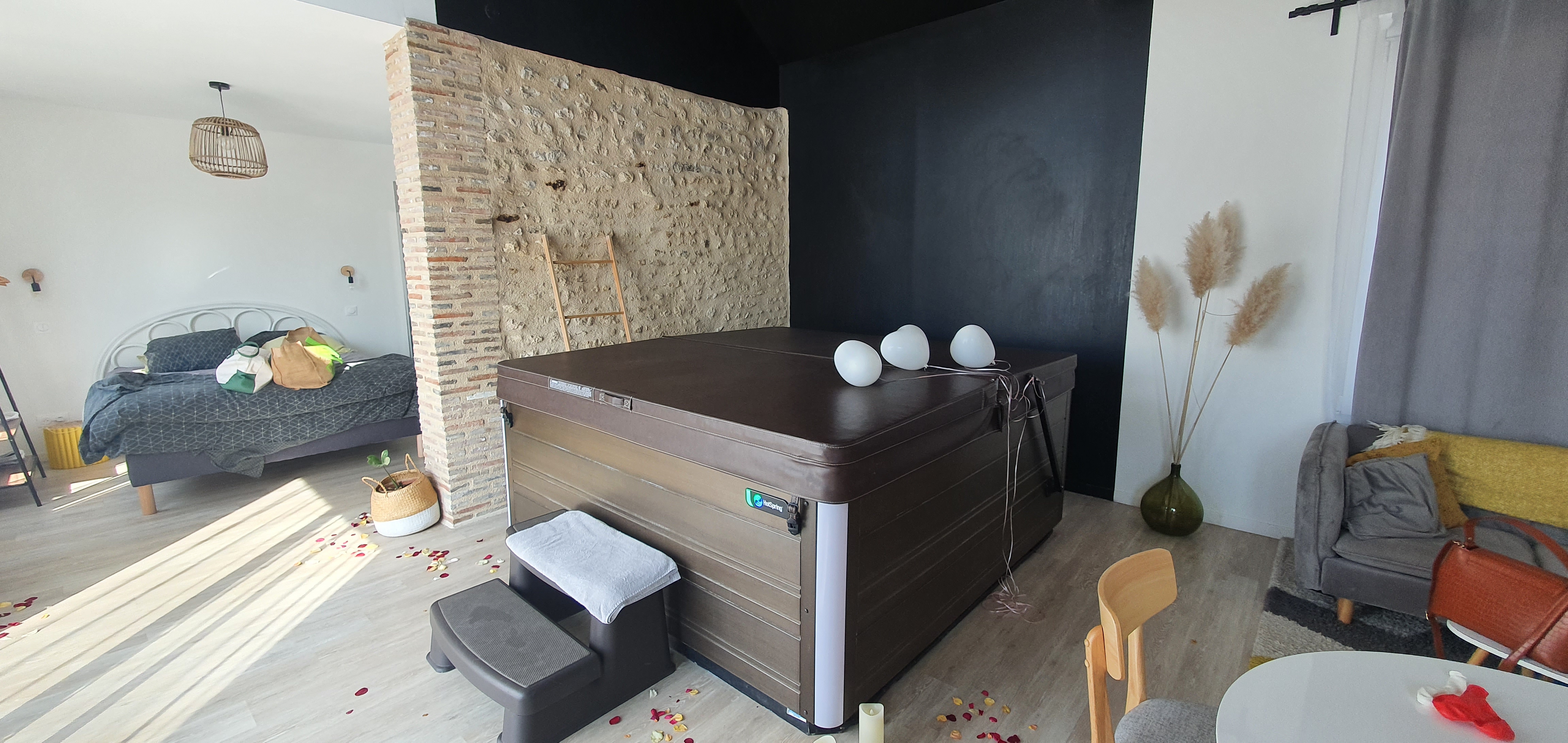 Posté le 24/02/2023 à 15:49"Très bien accueilli dans un lieu très cooconing chaleureux et agréable, un jacuzzi spacieux et très silencieux. Je recommande vivement pour décompresser, en prime terrasse et jardin clôturé, idéal pour un couple."