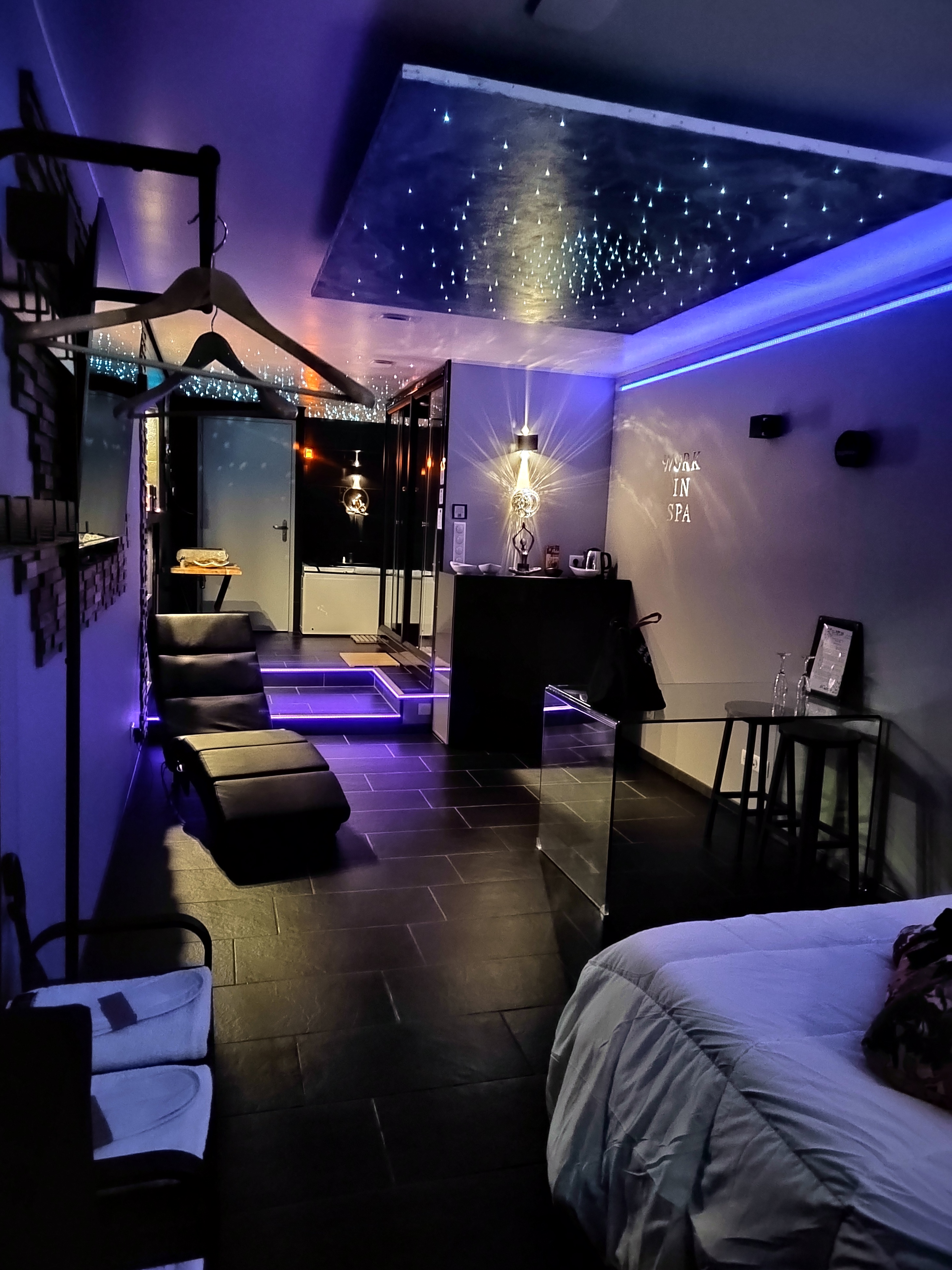 Ont à passer un super moment, la chambre est propre agréable, nous avons adoré avec mon mari. La personne à contacter au cas où est très reactive j'ai beaucoup apprécié l'échange pour les informations alors franchement les yeux fermés allez-y au work in spa🤩🤩